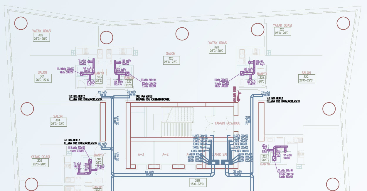 Firmamız ağırlıklı olarak Yüksek yapılar, Resmi hizmet binaları, Okullar, Sanayi tesisleri, Soğuk depolar, Villalar için mekanik tesisat projeleri yapmaktadır.